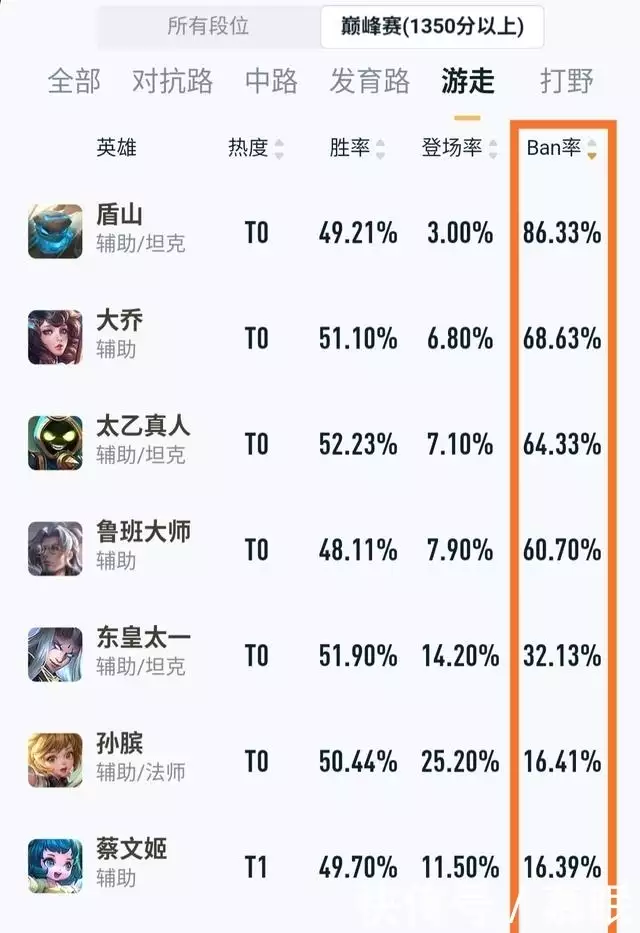 姚的隐最瑶状ban率不低,因为对方不会释放。王者玩